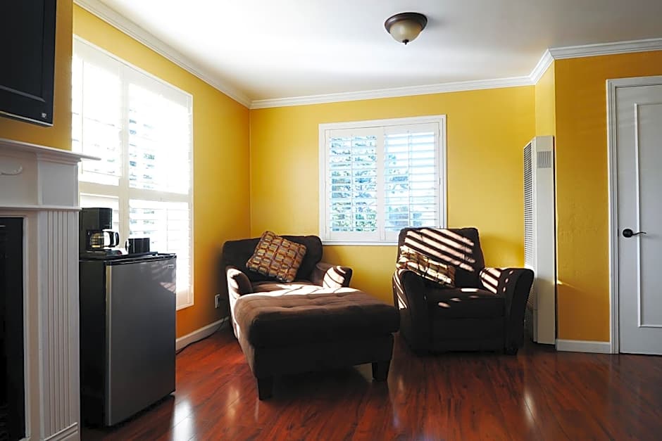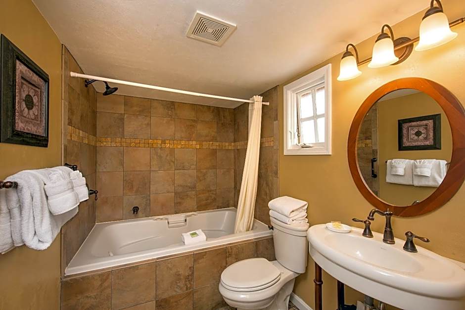 Featuring a flat-screen TV with cable, this queen room offers a fireplace, refrigerator, and a rainfall shower head in the private bathroom.